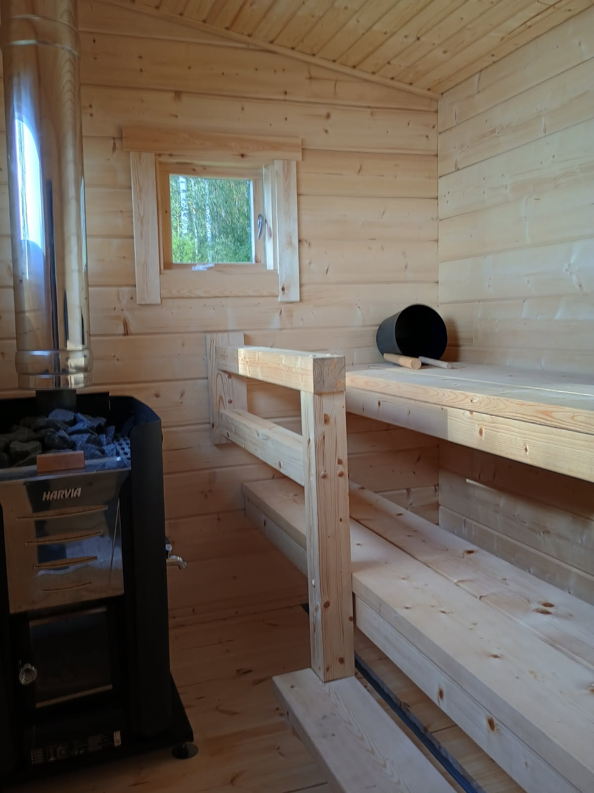 Vakio toimitukseen kuuluu isompi Harvian 20 kiuas + vesisäiliö