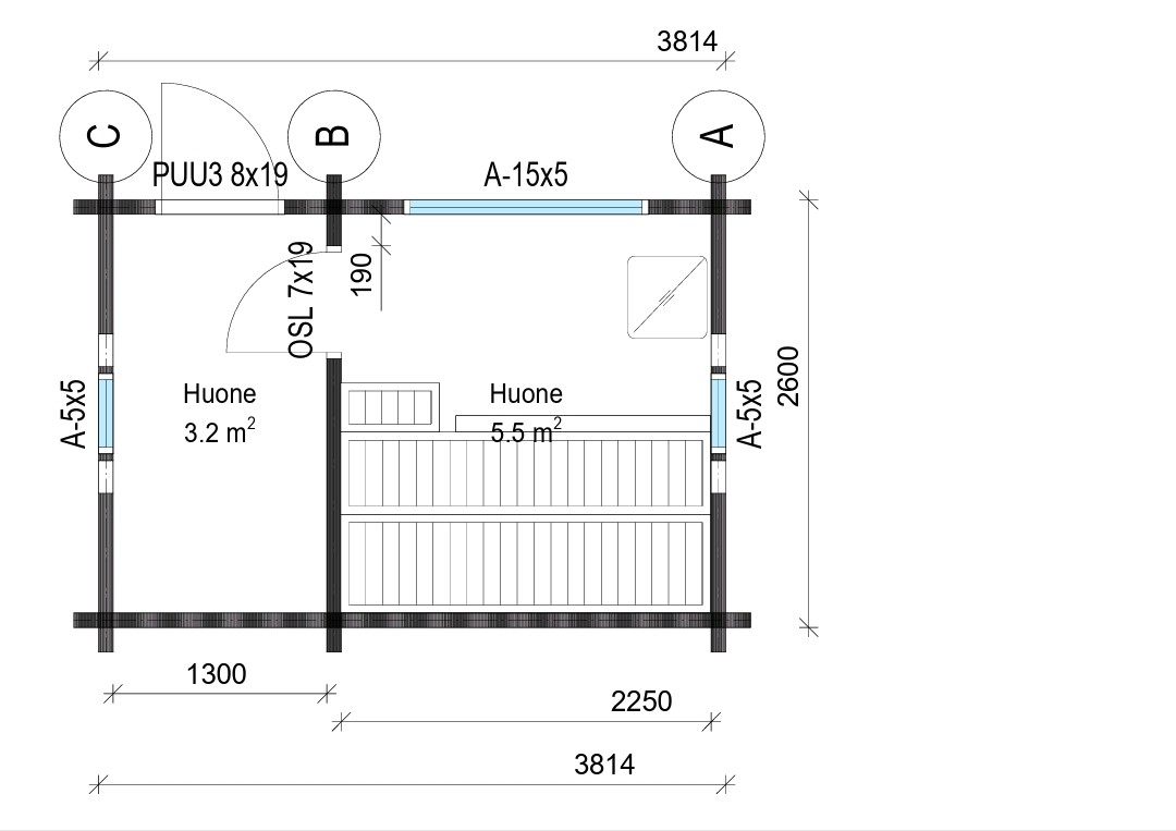 Ikkuna saunan etuseinällä 15x5, kiinteä (karkaistu lasi)